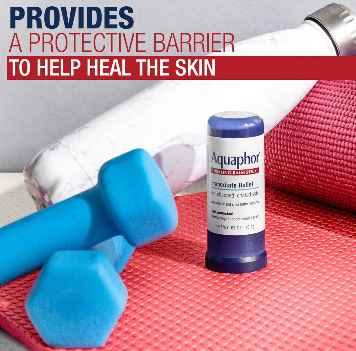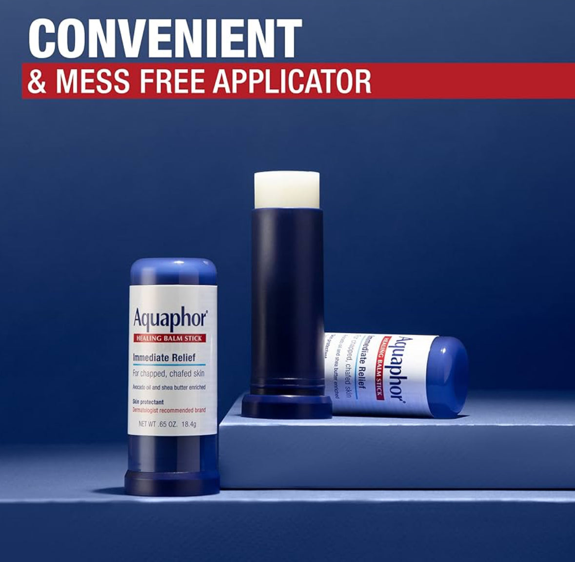 Aquaphor Healing Balm Stick also provides soothing care for chafing; dry, irritated skin; friction and windburn; chapped lips, and cracked heels and feet.