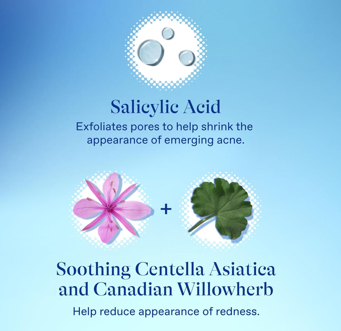 - TRIPLE-ACTION TECHNOLOGY: Salicylic acid exfoliates to shrink the appearance pimples, while soothing centella asiatica and Canadian willowherb help to visibly reduce the look of redness