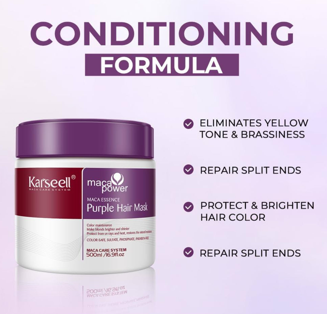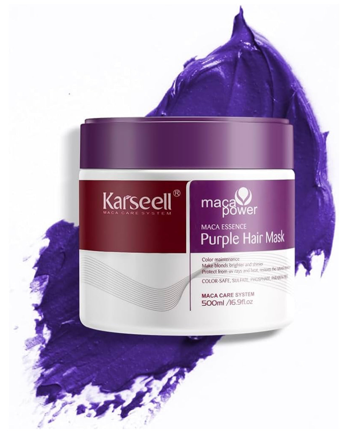 - Karseell Purple Hair Mask neutralizes brassiness in blonde shades for high quality at-home hair care.