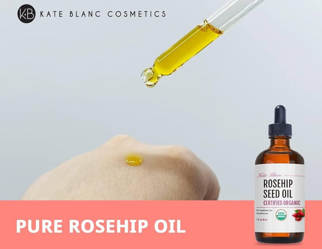 - NATURAL, NON-GREASY MOSTURIZER FOR SOFTER SKIN: Kate Blanc Rosehip Oil for Face organic cold pressed formula is a natural moisturizer that hydrates your skin and promotes a radiant glow. Rich in omega-3, omega-6, and fatty acids, rose hip oil is a great moisturizer for dry skin. Its unique properties reduce the appearance of stretch marks, acne scars, and fine lines, and also helps with dermatitis, acne and eczema, making rose oil a great face oil for women and men.
