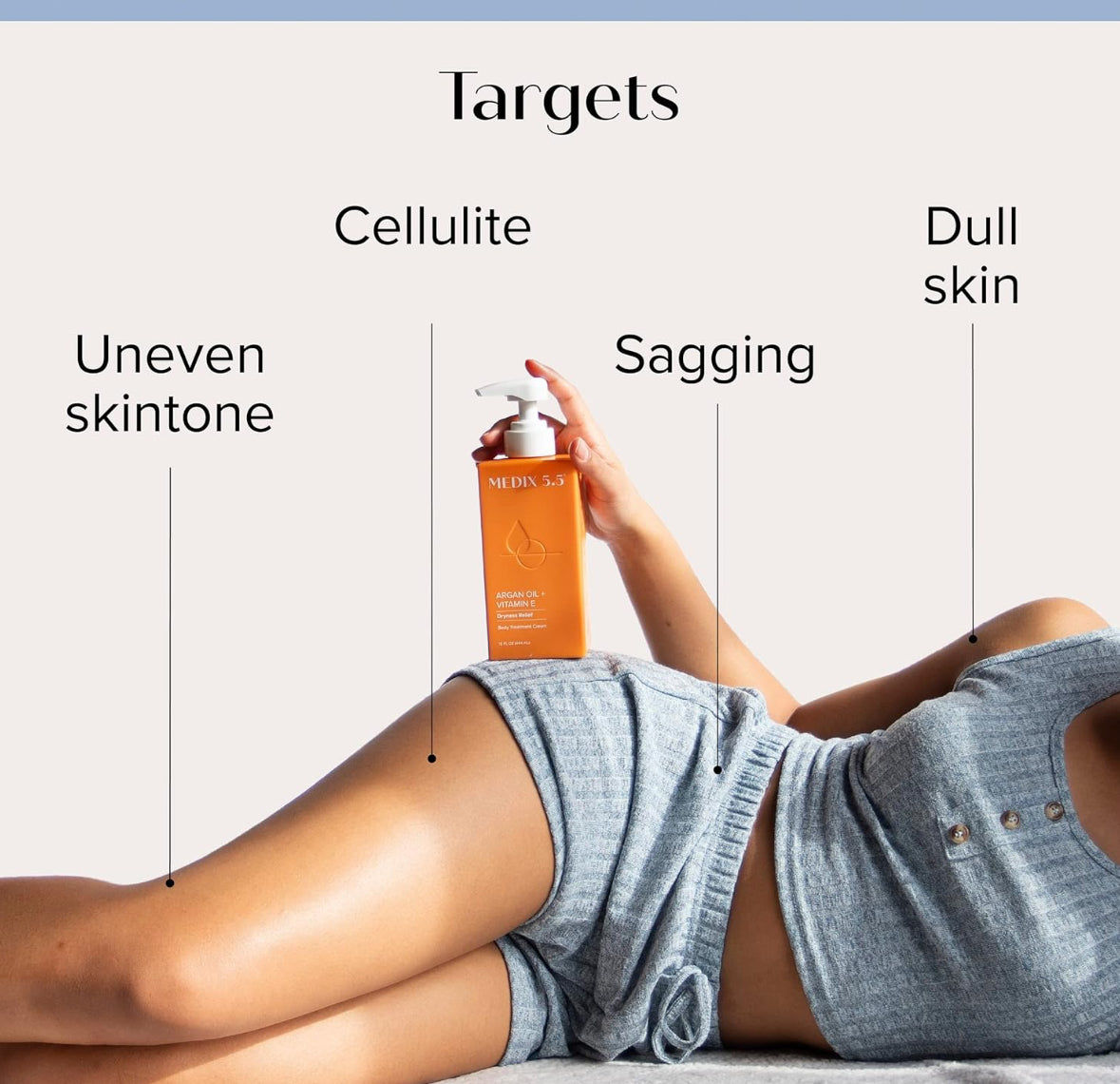 - DRYNESS RELIEF – Medix 5.5 Argan Oil + Vitamin E Dryness Relief Body Moisturizer Cream is the perfect choice for anyone looking to improve the overall health and appearance of their skin. Infused with powerful active ingredients like Argan Oil, Shea Butter, Vitamin E, Sacred Lotus, Green Coffee Bean Oil, Aloe Vera, & Fruit Extracts, which all work together to help reduce the look of wrinkles, fine lines, cellulite, sagging skin, & blemishes to promote smooth, firm, and healthy looking skin.
