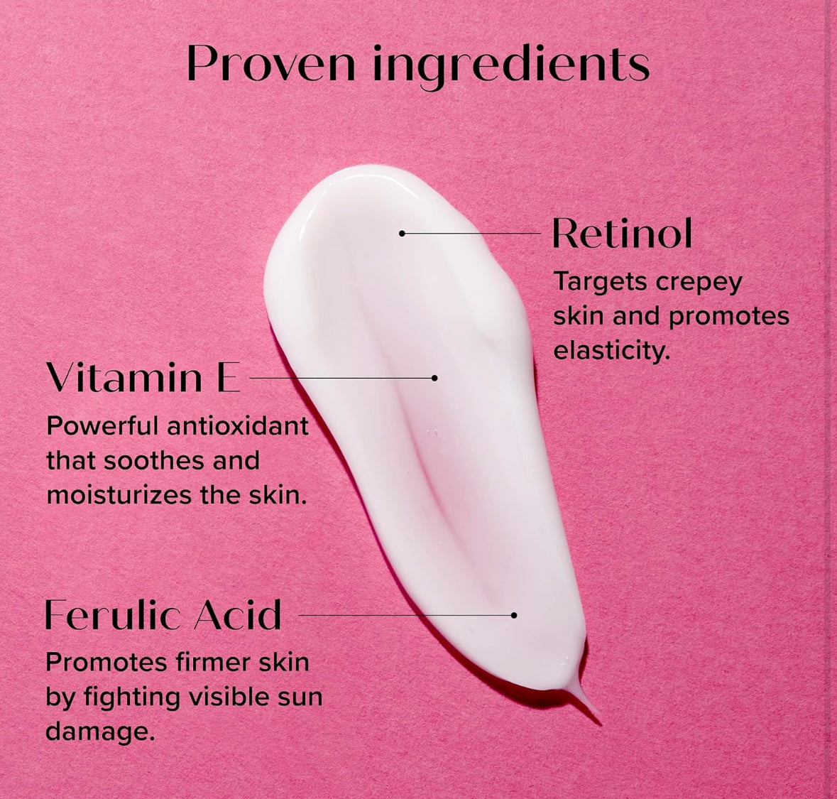 - EFFECTIVE ANTI-AGING INGREDIENTS – Medix 5.5 Retinol Cream is infused with Ferulic Acid, Shea Butter, Vitamin E, & Green Tea, which all work together to effectively firm skin + reduce the appearance of sun damaged skin, wrinkles, fine lines, & crepey skin. Aloe Vera defends against visible redness & irritation. Green Tea + Chamomile guards against environmental damage & reduces puffiness. Combination of ingredients make this Retinol Body Cream non-irritating unlike many other retinol products.