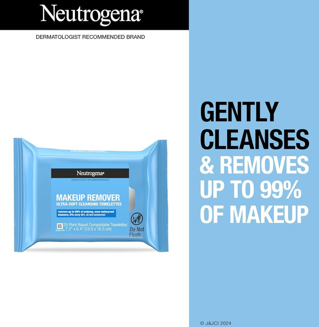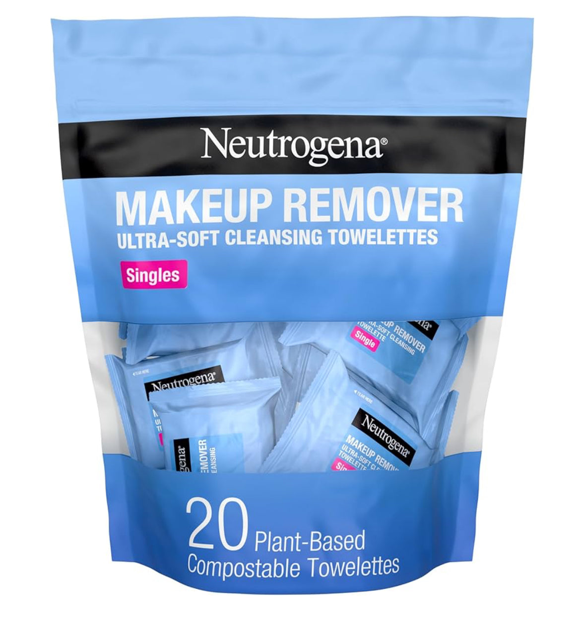 - 20-count of individually wrapped soft, pre-moistened Neutrogena Makeup Remover Cleansing Towelette Singles. Individually wrapped face wipes are perfectly protected so you always have a fresh and effective wipe for complete cleansing and makeup removal