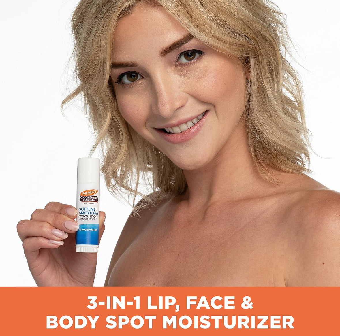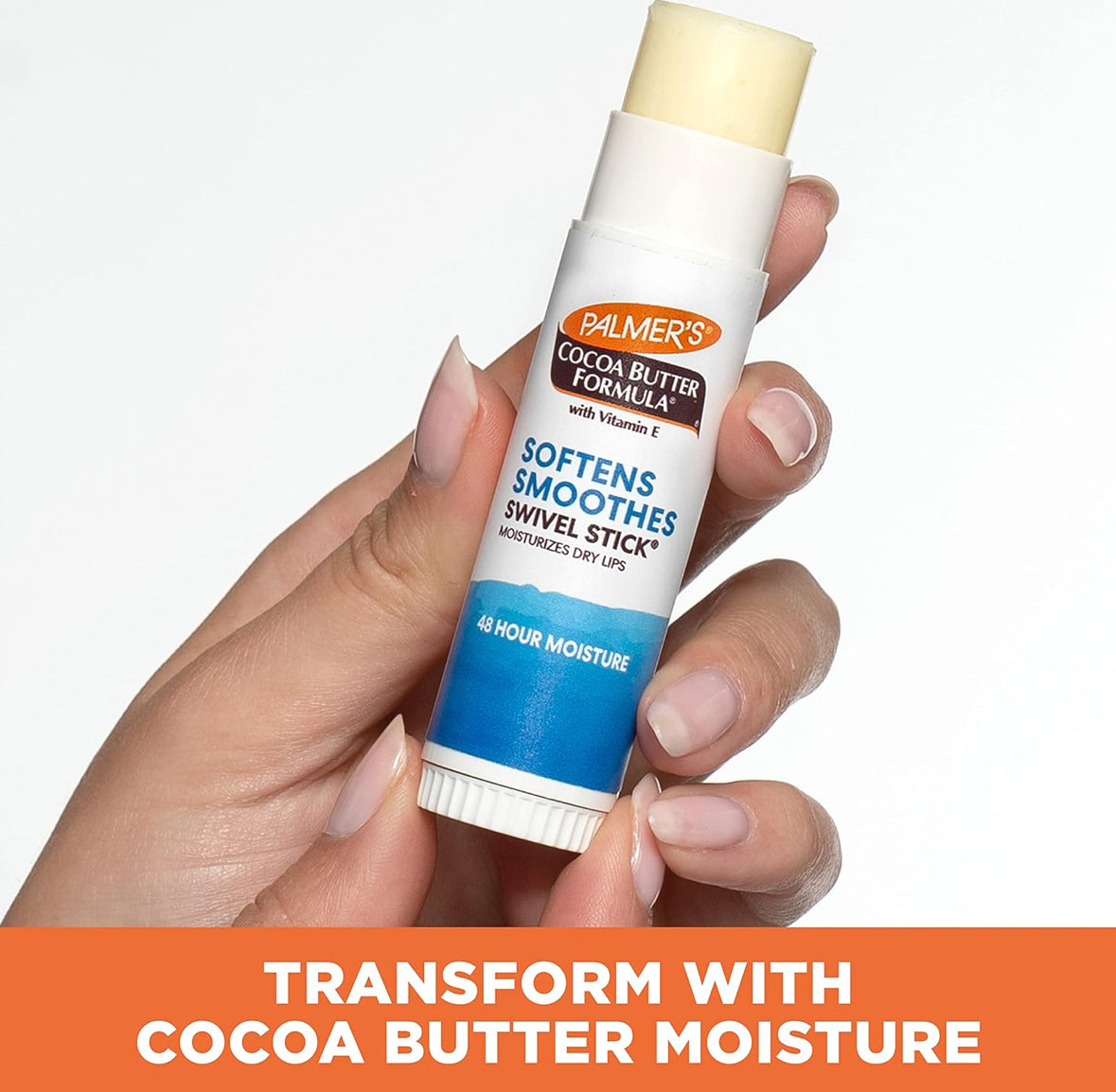 A must have in your makeup kit, the Palmer's Cocoa Butter Swivel Stick is the ultimate multi-purpose beauty tool! From moisturizing cracked cuticles to hydrating dry lips and taming flyaway hairs, the Swivel Stick's ultra-portable size makes it the perfect size to bring with you to tackle every day annoyances. Use it as a lip balm for chapped lips, as a spot treatment on dry elbows or knees, or to soothe and smooth marks and scars with 48 hour moisture. Proudly made in U.S.A., Palmer's has been a trusted brand for over 180 years, providing high-quality natural products that are passed down from generation to generation. America's #1 Cocoa Butter brand, Palmer's Cocoa Butter Formula uses the highest quality natural ingredients for superior moisturization head-to-toe.
