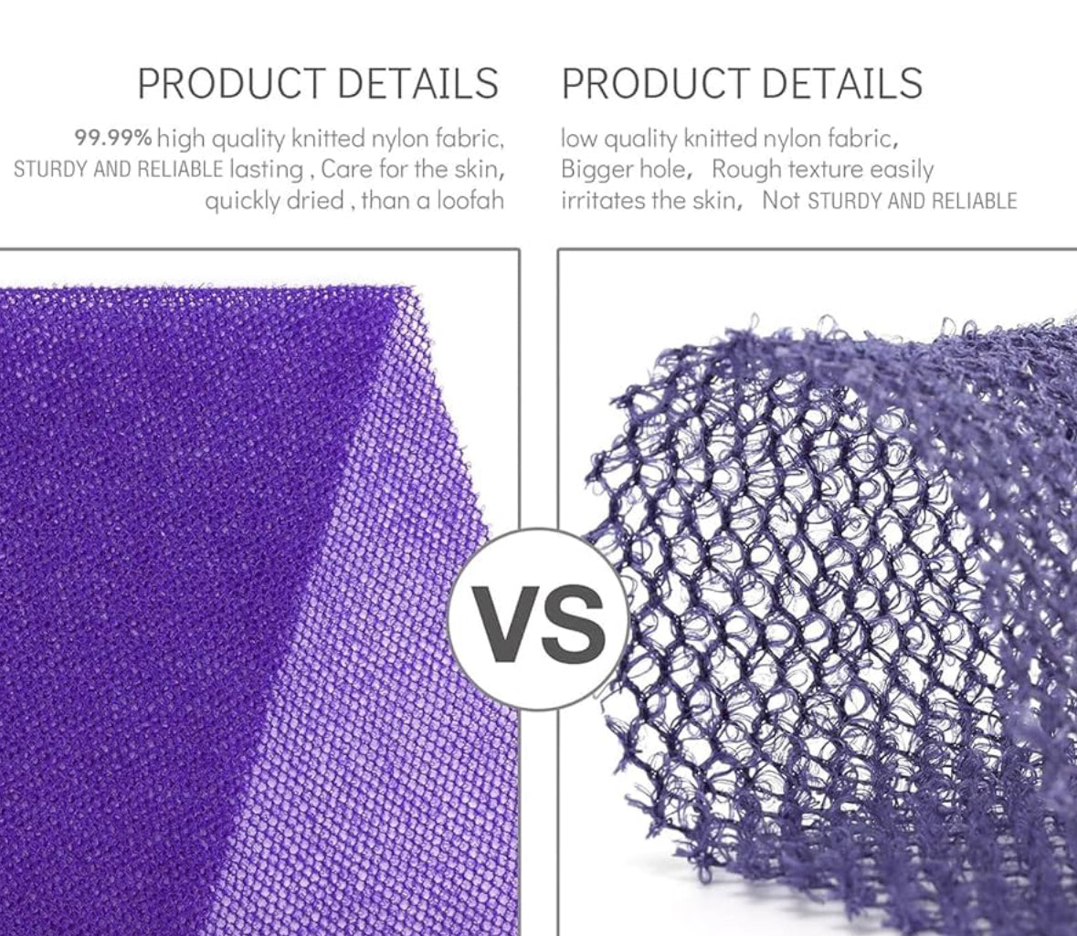 - 【More efficient cleaning】The exfoliating body net is rougher than a ordinary bathing cloth, but soft enough for daily body cleansing.easy for removing dead skin, dirt, oil, and eliminating impurities, unclogging pores, suitable for women and men of most ages to use